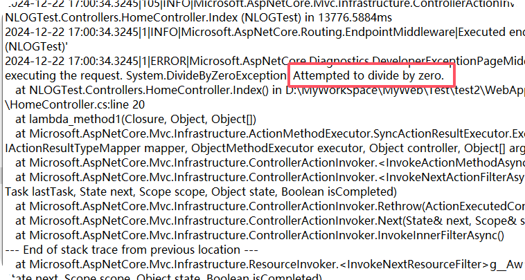 到此基本上是集成到项目中去了,现在看一下如果项目中出现异常时,能不能也输出到 文件中